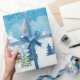 Vinterlandskap i kvällar med snö täckt presentpapper
