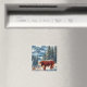 En serenvinter-scen med kor som betar på en bergsbete som är täckt av snö, omgiven av vintergröna träd och stora toppar, skapande ett stillastående och bildligt vinterlandskap på landsbygden.