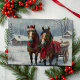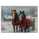 Vinterlandskap med hästar och stuga