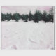 Vinterlandskap med stort träd och en filt av snö. Det är kall utanför!
