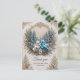Vinterlandskap med sött fågel bröllop par. Bakgrunden visar ett stiliserat vinterlandskap med mjukt snö och snö täckt fir träd, som skapar romantisk och festlig stämning.