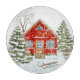 En charmig design med festlig vinterbakgrund med granar och ett rött hus! En söt, älskvärd vinterdesign.