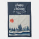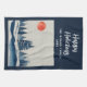 Vinterlandskapet Skogsträdens blå Helgdag Red Måne Teckning Kitchen Towel. Lugn vinterlandskap i snö med skog. Glad helg i ett trendig-skript. Personlig texten.