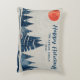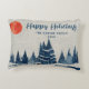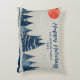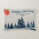 Vinterlandskapet Skogsträdans blå Röda Måne Teckning Helgdag Pillow. Lugn vinterlandskap i snö med skog. Glad helg i ett trendig-skript. Personlig eller radering av texten.