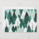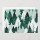 Ett modernt julkort med en vintersnöscen med ständigt gröna träd. Bilden är i en modern rustik stil och har en akvarelleffekt. Den avkopplande scenen ger en känsla av frisk isande luft och ljudet av lätt snöfall i skogen. Baksidan av kortet är tom för ditt eget meddelande.