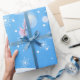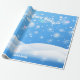 Julpapper med önskningar, personligt, signaturfamilj, jul snöberg och vita snöflingor på blå snöig bakgrund. Glad jul och nyår vacker presentpapper för älskvärda julklappar. XMAS Presentpapper dekorerat med magiska jul symboler, vintersnöflingor, högtidsgåvor element mönster, snöman, julgran, julkulor, snöflingor och fler festliga figurer. Originell trendig grafisk design. Personifiera dem genom att lägga till namn eller önskningar text.