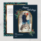 Detta eleganta platta julkort har en guldbåge fotoram, omgiven av enkel vinterlövverk och bär samt budskapet "God Jul". Gör det verkligen unikt med ditt foto och familjenamn. Lägg till ett personligt meddelande på baksidan eller lämna tomt genom att ta bort texten i avsnittet Anpassa detta