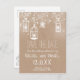 Rustik bröllops inbjudan postkort med en brun pappers kraft bakgrund. Med lyktor i vitt med vintersnöflingor.