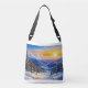 vintermorgon, soluppgång, återanvändbar jord axelväska
