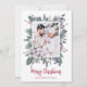 Modern julkort med ett känsligt botaniskt vattenfärgat ram under vintern, med vackra och ömtåliga bomullsblommor med fräckt grönt. Lägg till ett av dina favoritfoton och ditt namn som du vill anpassa.