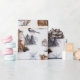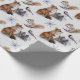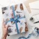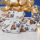 En vattenfärg som upprepar mönster med en vacker röd räv sitta nedåt i snö tittar upp vid en fågel bredvid vilken är en brun ekorre med en bushy svan och en enda blå grått-snöflinga mot en vit bakgrund. Idealisk för alla speciella bröllop, födelsedag, årsdag och förlovningsfester.