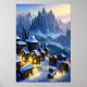 En liten stad med snö på marken och på taket är dag och vinter. Det här är en AI-skapad konst.