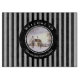 Vattentärsmålning av en vinterscen i New England, en tyst dag när snö precis har fallit ner i marken. Helt och hållet bildande och fredligt. Utformningen har en svart cirkel ram runt med personlig överst och underst. Konstruktionen har lodrät grått och svart rand mönster. Anpassade i Zazzle med egen text för personlig. Checka ut min butik för matchande artiklar!