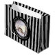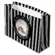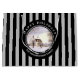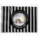 Vattentärsmålning av en vinterscen i New England, en tyst dag när snö precis har fallit ner i marken. Helt och hållet bildande och fredligt. Utformningen har en svart cirkel ram runt med personlig överst och underst. Konstruktionen har lodrät grått och svart rand mönster. Anpassade i Zazzle med egen text för personlig. Checka ut min butik för matchande artiklar!