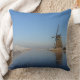Fotodekorativ kudde dämpar med en landskap i bygden i Nederländerna i vinter med en kvarn, is på floden och frostade vasser under en klar blå himmel.