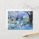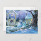 Vintern Snögubbe framför en julstuga Helg Vykort