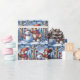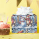 En mysigt scen har en nalle och en snögubbe som är klädd i att matcha röda hattar och sjalar som njuter av vinterunderlandet