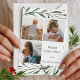 Skicka helgdag önskemål och hälsning till vänner, kolleger och familj i enkla, chic, elegant och modern 3-fotosamlingskonstruktion för festliga, naturliga helgdagskort i färg stil som är uppspelade i! Ett vackert ram av mjuk grönt som målar vattenfärgen löv, omgivet av guld konetti flingor framför. Mitten har dina tre foton med anpassningsbar hälsning-meddelandet på grund-högerna " God jul" i latinsk typografi, med namn och året. Klicka bara på "Anpassa den här mallen" om du vill ändra dina foton (framsidan) och Hälsning-meddelanden (framsidan och insidan).