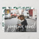 Skicka julhälsningar till vänner och familj i vintersmysig stil med våra eleganta fotokort. Ditt favoritfoto överläggs med den franska julhälsningen "joyeux noel" i vit handritad typografi, med era namn och året under. Baksidan av korten har vårt Vinteröverflöd-mönster med frodig grön botanisk växtlighet på en krispig vit bakgrund.