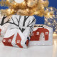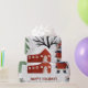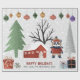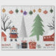 Vinterpanda och träd Glad helg-julklapp Papper som visar upp en pandabjörn i vinterkläder, träd, gåvor och prydnadsföremål.