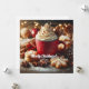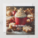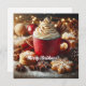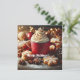 Vinterpipande gräddkaffe i röd mugg i hett julkort