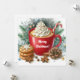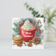 Vinterpipande gräddkaffe i röd mugg i hett julkort