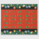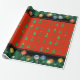 Julklappspapper med julfigurer. Glad jul och nyår, födelsedag vacker Vintage-inpackningspapper för söta julpresenter. XMAS-inpackningspapper dekorerat med magiska jul symboler, vintersnöflingor, dekorationer för högtider, snöman, julgran, julkulor, snöflingor och fler festliga figurer. Originell trendig grafisk design.