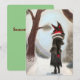 Vinterräv Handmålad Julkort. Söt och unik mjuk pastell målad av mig designad säsongskort. Sagoräven på en vinterstig iklädd svart kappa och kjol. Sällsynt fynd. Köp idag!