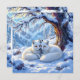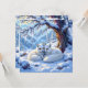 En söt vinterräv fick julen eller Glad helg-kortet. En söt illustration av två vita rävar, ett mamma och baby som klumpar under träd i snö.