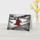 Det här vänskap-kortet har en tänkvärd ung kvinna i ett rött jacka sitta på en fallande logg vid ett delvis fruset bäck som reflekterar över snövågen, kallets vinterscen. Texten lyder: Bara att tänka på dig.. Den kan anpassas efter dina behov i kostym.