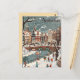 Detta vykort för resor visar en serene och varm illustration som representerar Amsterdams kanaler och skylin under vintern. Det är ett underbart och romantiskt vykort för resenärer som planerar att besöka Amsterdam eller för dem som reste till Amsterdam och skickade ett vykort till sin familj eller sina vänner.