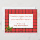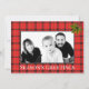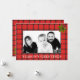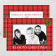 Stilfull röd kartrutig julkort som kan personifieras. Foto på framsidan och välgångsönskningar på baksidan.