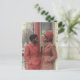 En hjärtvärmande och vintageinspirerad scen av ett par iklädda eleganta röda kappor, som djupt betraktar varandra en snöig dag. Miljön inkluderar en romantisk bakgrund av en butik fasad prydd med hjärtformade dekorationer, som frammanar en känsla av kärlek och intimitet. Deras tidlösa stil och varma uttryck speglar kärlekens skönhet i dess renaste form.