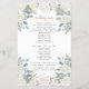 Designad för att samordna med vår vinterrosbröllopssamling. Detta anpassningsbara bröllopsprogramsblad har akvarell vita rosor och grönska med modern typografi i svart och guld. Matchande artiklar finns tillgängliga.