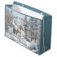Vinterscenen med en vit (grått) personlig juldesign för hästälskare.