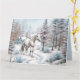 Vinterscenen med snöskog med en vit (grått) hästjulutformning. Det står God jul i insidan och du kan lägga till din egen personlig.