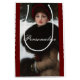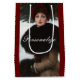 En vacker målning av en viktoriansk kvinna på en vinterscen med snö och evergreens. Hon bär päls muff och halsduk. Mycket elegant.