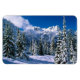 Magnet visas med ett foto av en vacker vinterscen snö i bergen. 4x6 storlek. Lagrar-bild