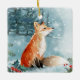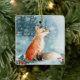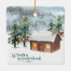 Vinterskog, räv, logghabin keramiskt prydnadsförem julgransprydnad keramik