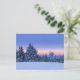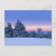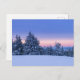 Vinterskogar i liggande vid solnedgången vykort