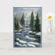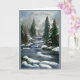 Vackert julkort med en bild av snö täckte sten, högt gräs träd bredvid en underbar flod.