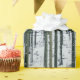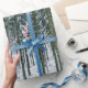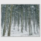 En vinterskog landskap med en låg vinkel beskådar på snö täckte träd.