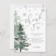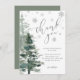 Modern silver vinterdusch, tack för ditt kort. Design har ett modernt calligraphy-skriptteckensnitt, snöflingor och vattenfärgsskog i träd. INTE SILVER FOIL