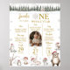 Det här tecknet visar milstolparna från nyckel från baby första år med vackra skogsägare utklädda på vinterhattar. Det är ett charmigt och festligt sätt att visa upp dessa värdefulla minnen på en vinteromgiven födelsedagsfest. I personlig-sektionerna framhävs milstolpar och landvinningar från baby:s första år, t.ex. det första ord, det bästa mat, leksak, höjd och vikt. Det finns också utrymme för ett sött foto, antingen från baby första födelsedag eller ett annat minnesvärt ögonblick.