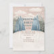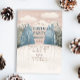 Julinbjudan till julfest med tecknad vinterskogar nordiskt landskap i rosa blått färg.