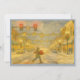 Vinterskt julkort med nedsnöad stadsbild