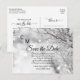 Eleganta och moderna Spara datumet-kort att skicka till era gäster. Svag skrivstil kalligrafi med vintersvidslandskap. Personliga mallar online för enkel redigering. Lägg till din text på fram- och baksidan av kortet. Kontakta formgivaren för specialbeställningar.
