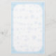 Denna brevpapper presenterar en bakgrund av blåttsnöflingor och en frostig gräns.
