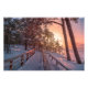 Vintersolnedgång i gräs-skogen nära havs fototryck
