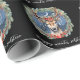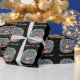 Vintersolstice Helgdag Hjort Utandningsbergen julomslutning papper med svart bakgrund. Lycklig Winter Solstice! Fira årets längsta och magiska natt med den vackra Juljulens Helgdag Winter Solstice-design. Den här vackra, moderna vattenfärgsdesignen har en andedräkt av grönt, hjort med tändare, guld Stars och blå halvmånstlig måne, grenar, rött ljus med glödande låga och metafysiska, esoteriska guld kristallkulor. Redot Text som du vill anpassa med ditt eget välsignelsecitat.